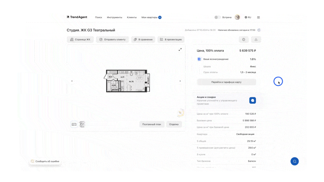 Это инструмент, который помогает агенту быстрее работать с клиентом. Рассчитать первоначальный взнос, ежемесячные платежи и показать выгоду клиента — включая налоговый вычет.